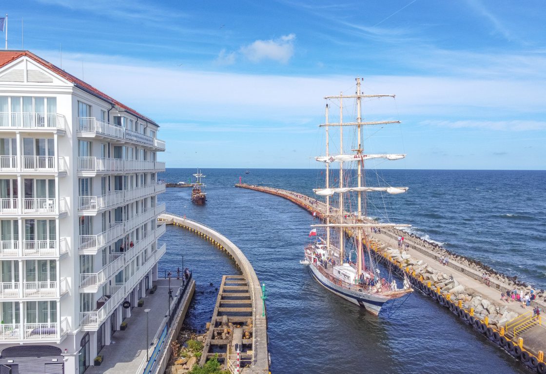 Zachód słońca, morska bryza, piasek pod stopami. Relaks. To wszystko czuć już na wspólnym dziedzińcu po wejściu stopami na morski piasek.