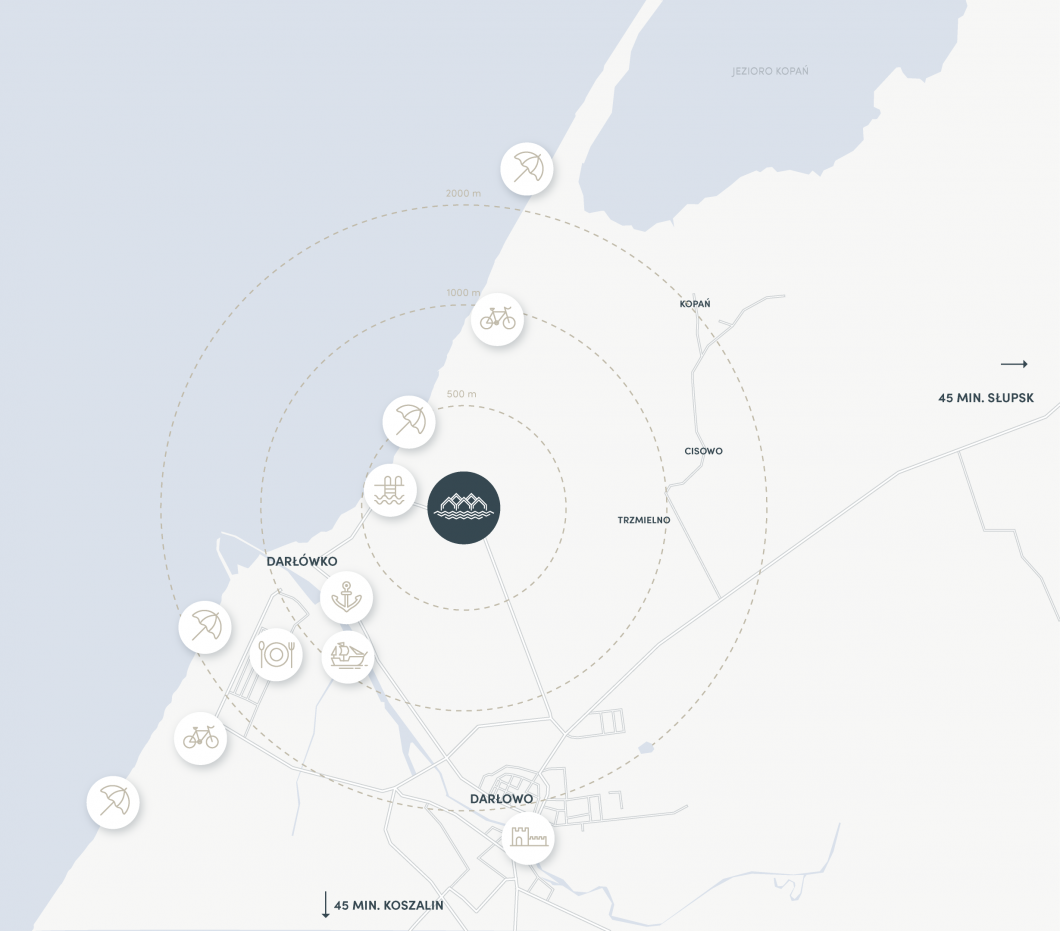 "Bałtyckie Domki" w Darłówku posiadają wszystko, co potrzebne do wypoczynku nad morzem. Dzieci znajdą tu przestrzeń do gier i ciekawe place zabaw. Aktywni odnajdą się na boisku do siatkówki plażowej i zostawią swoje rowery na specjalnym parkingu dla jednośladów. Wielbicielom rozluźnienia do gustu przypadnie miejsce na hamakach lub na leżaku. Wieczorem wszyscy spotkają się przy grillu u siebie lub... u sąsiada.